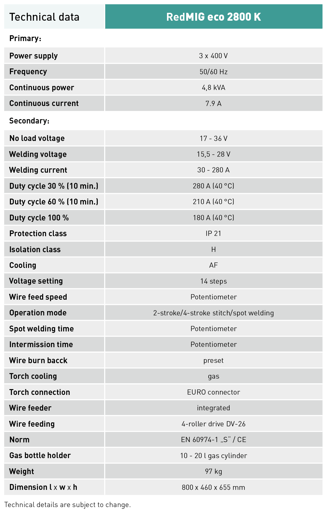 Thanks to its compact design, classic step switch and transformer technology, and its robust, stable construction, the RedMIG eco 2800 K is the perfect choice for use in craft businesses, automotive workshops, and service operations.