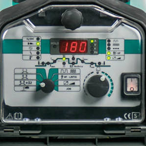 - Digitalanzeige für alle Parameter, mit Voranzeige und Holdfunktion für Schweißstrom.